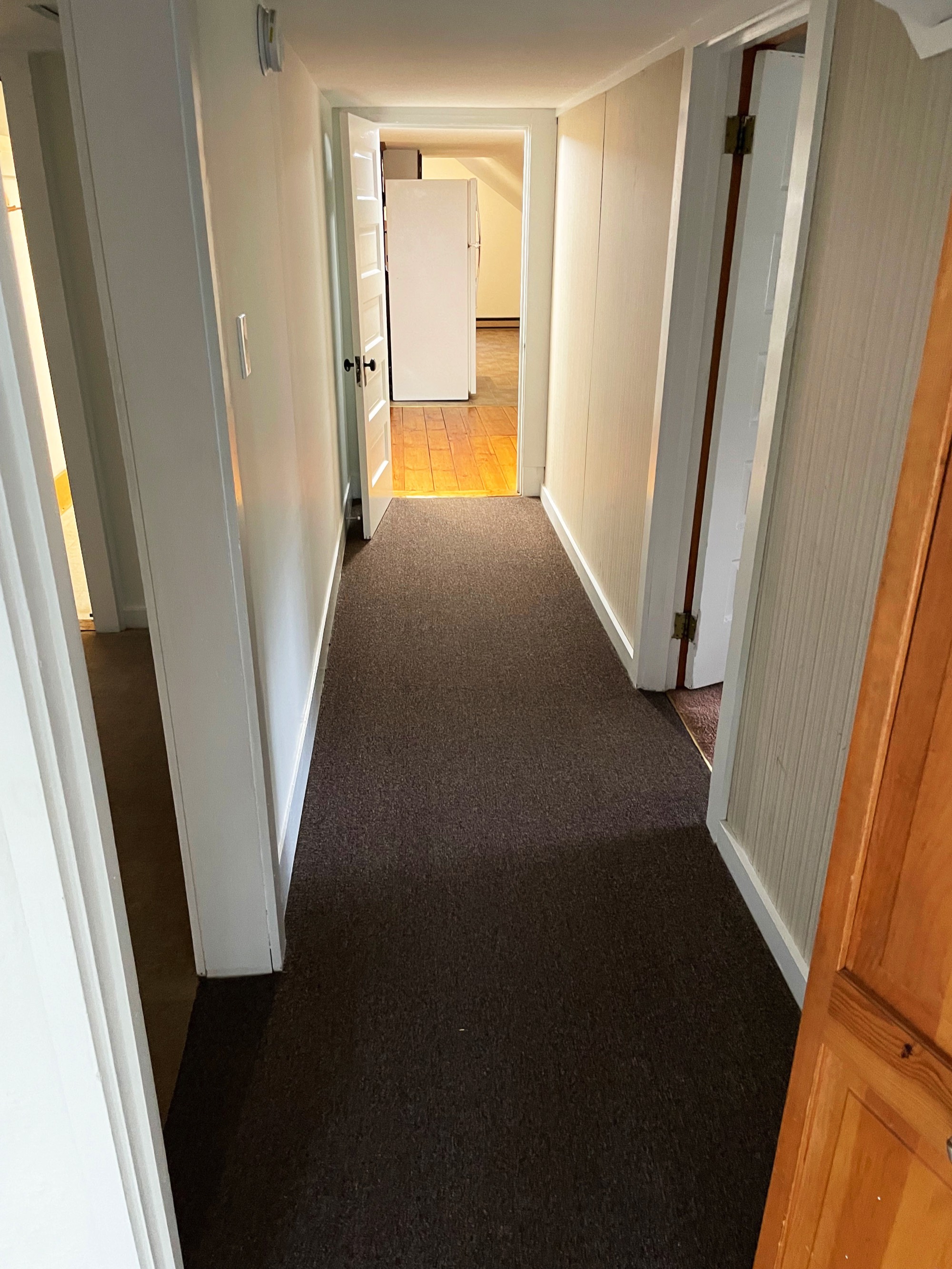 The Hallway connects the kitchen to the bathroom and bedrooms.