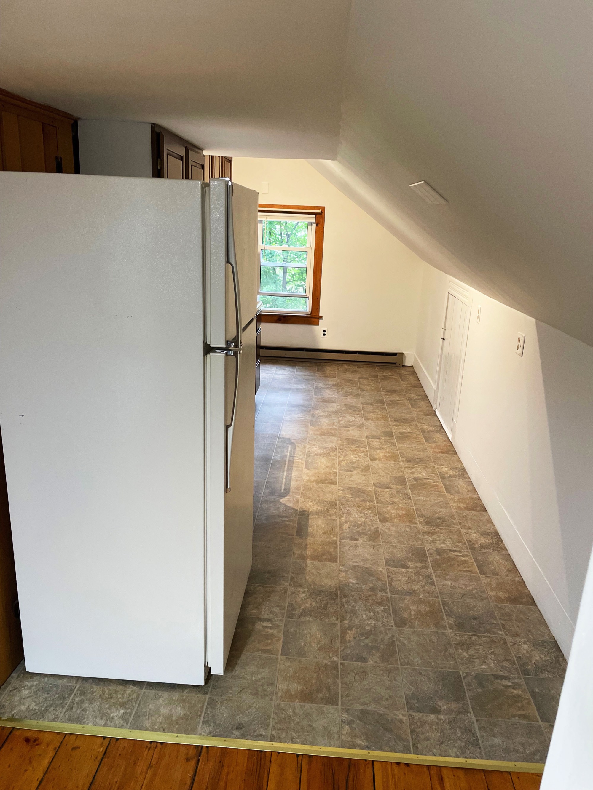 The kitchen is157.5 square feet (7.33' x 21.5').